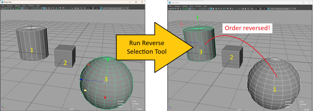 Instructions: Select stuff in Maya, then run this script to reverse the selection.